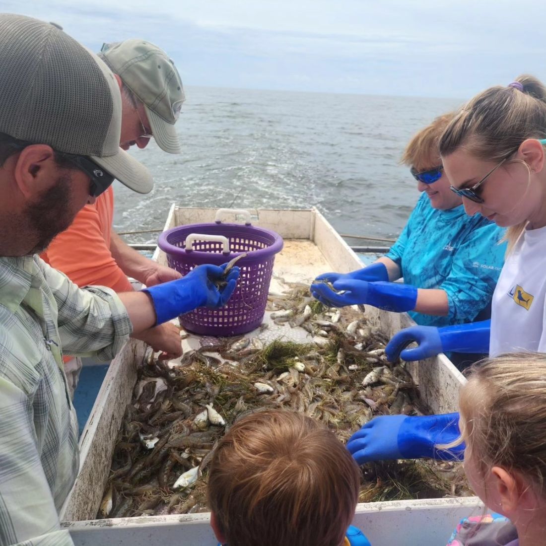 Our experienced captain and mate will show your group how to pull crab pots to catch blue crabs and trawl for shrimp the same way that the local commercial fishermen do.